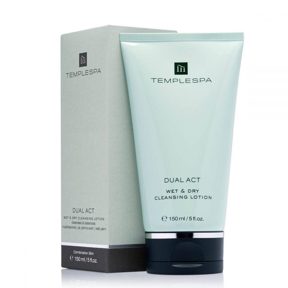 Temple Spa Dual Act Wet & Dry Cleansing Lotion, 150ml £21, www.templespa.com